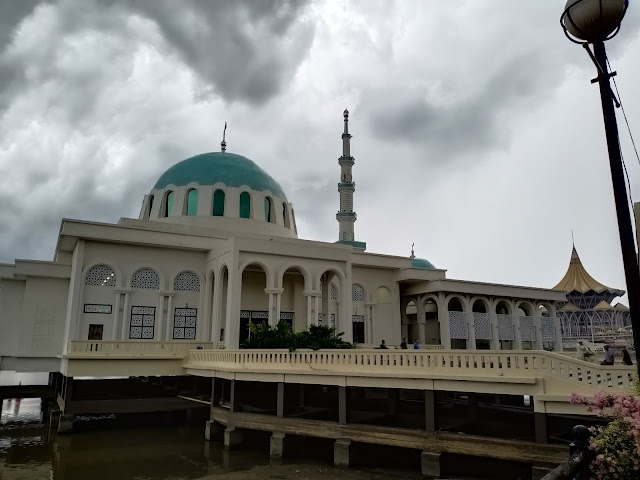 Masjid India - Jangan ingat di KL je ada Masjid India. Heee.. di Kuching pun ada juga dan merupakan antara tarikan terbaharu di bandar Kuching. Masjid ini juga dikenali sebagai Masjid Terapung. Aku singgah masjid untuk solat jamak. Sebenarnya aku nak cari Masjid Bandaraya Kuching, tapi langit dah semakin menggelap. Kiranya, kalau hujan turun, aku boleh berteduh sebentar di dalam masjid.